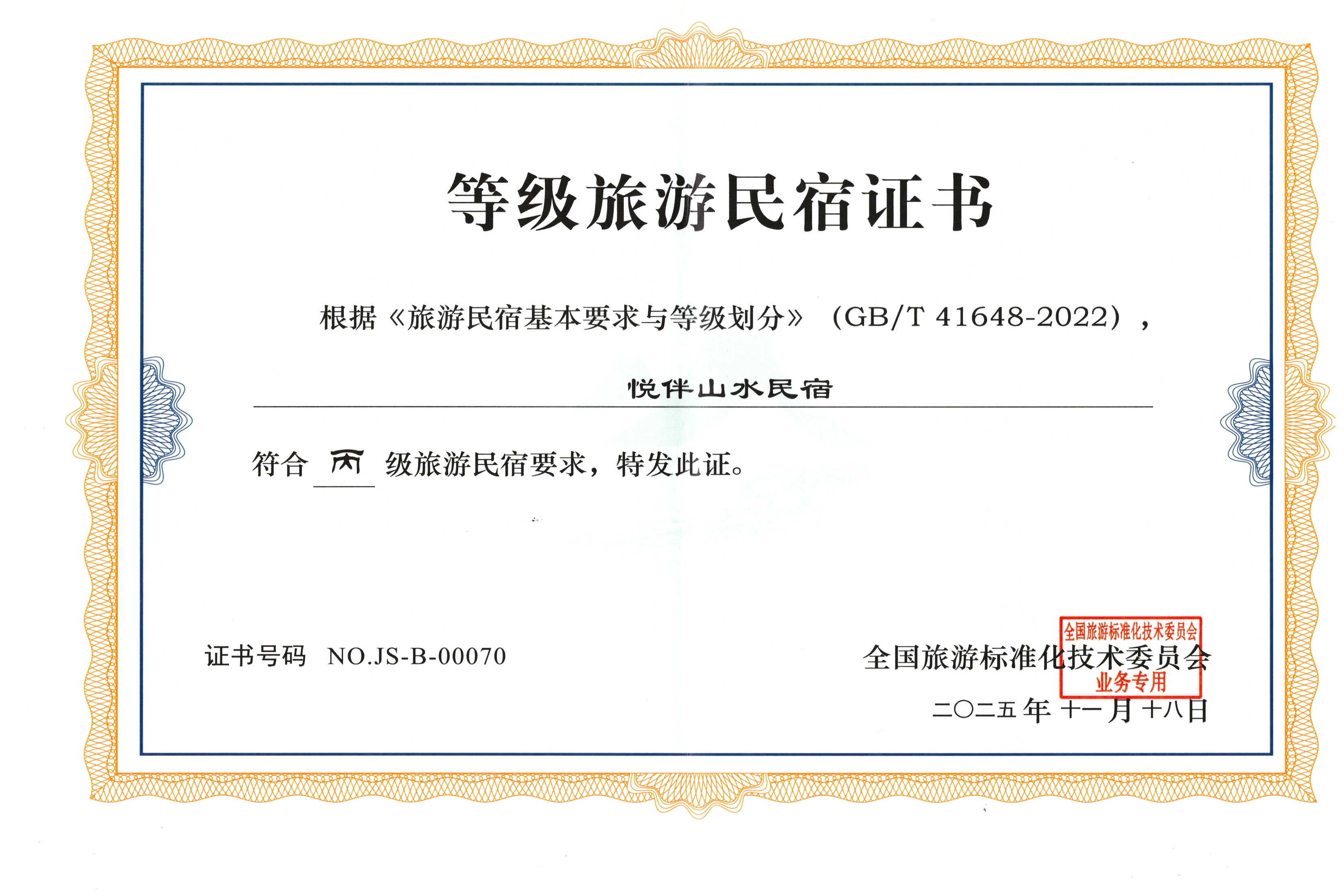 • 【喜报】热烈祝贺悦伴山水民宿荣获国家丙级旅游民宿荣誉称号!